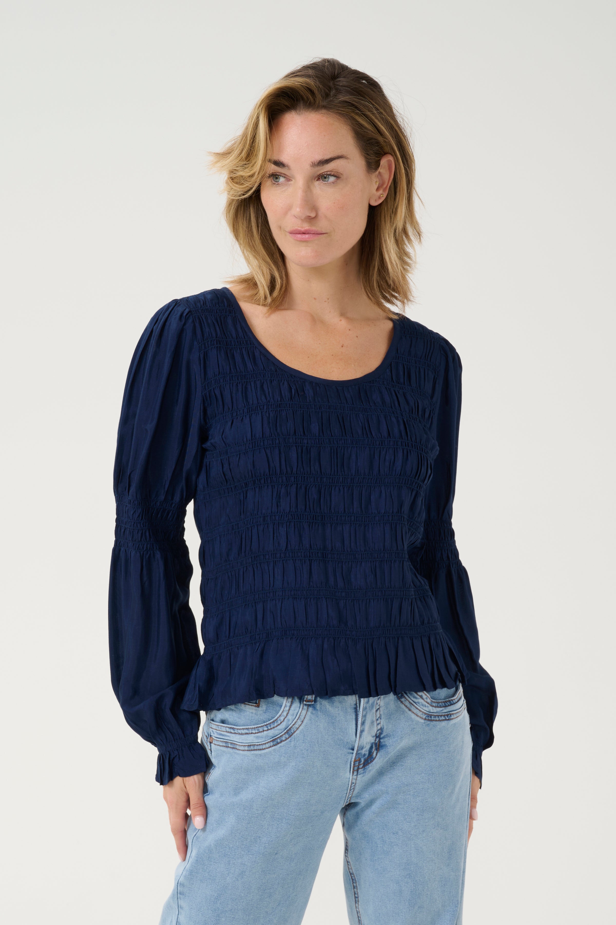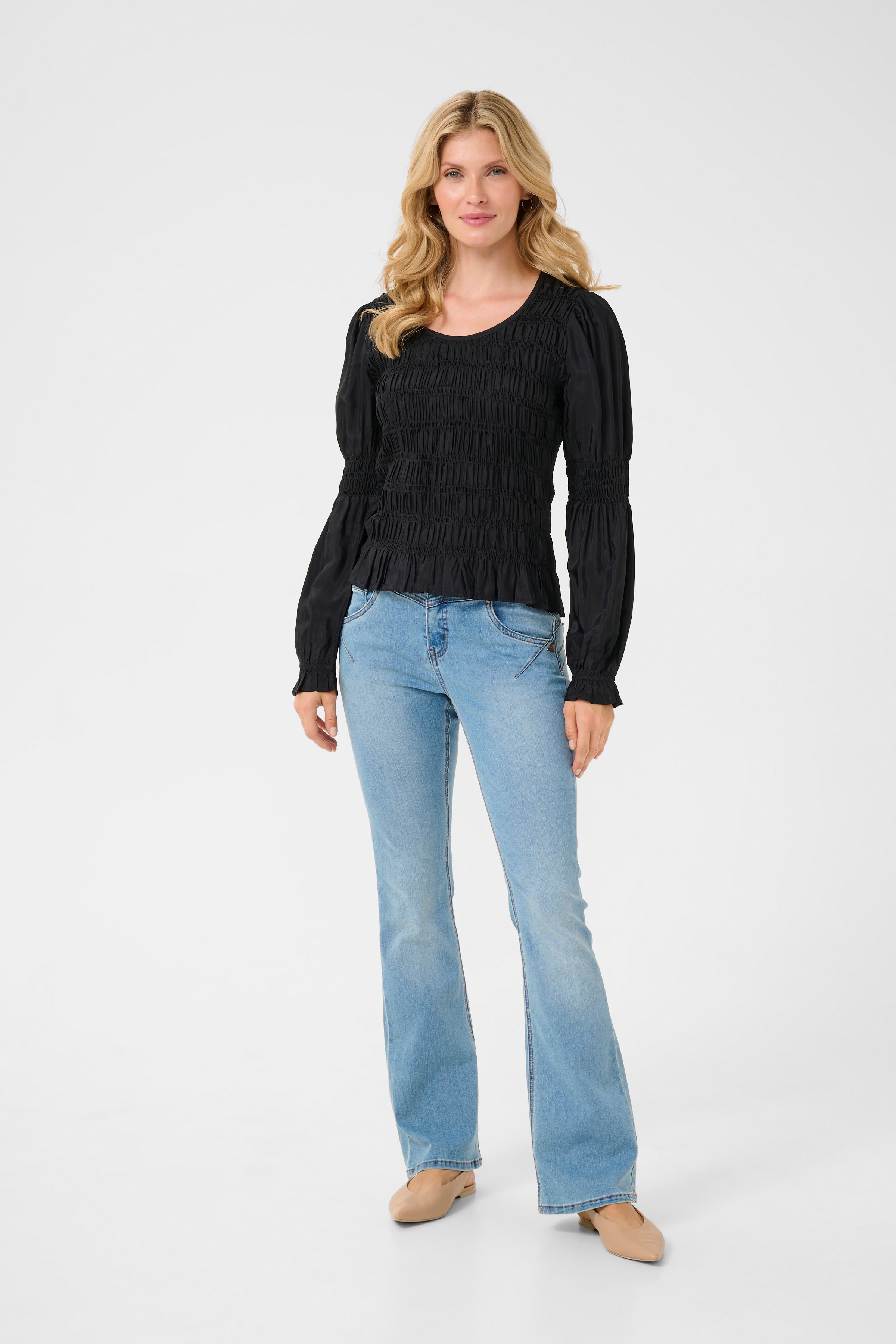 • Smart snið með rykkingum og langar ermar Töff við dragt pils eða gallabuxur..