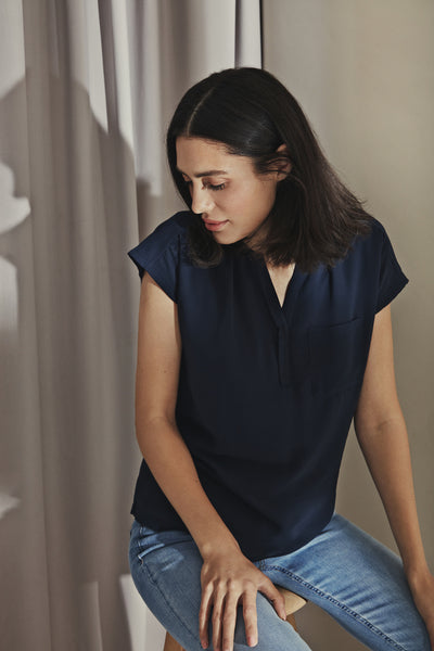 • Þessar blússur klikka ekki siffon að framan og teygja að aftan.