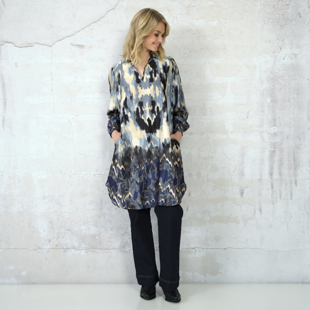 - L: Bryst omkreds: 116 cm, længde: 100 cm Str.