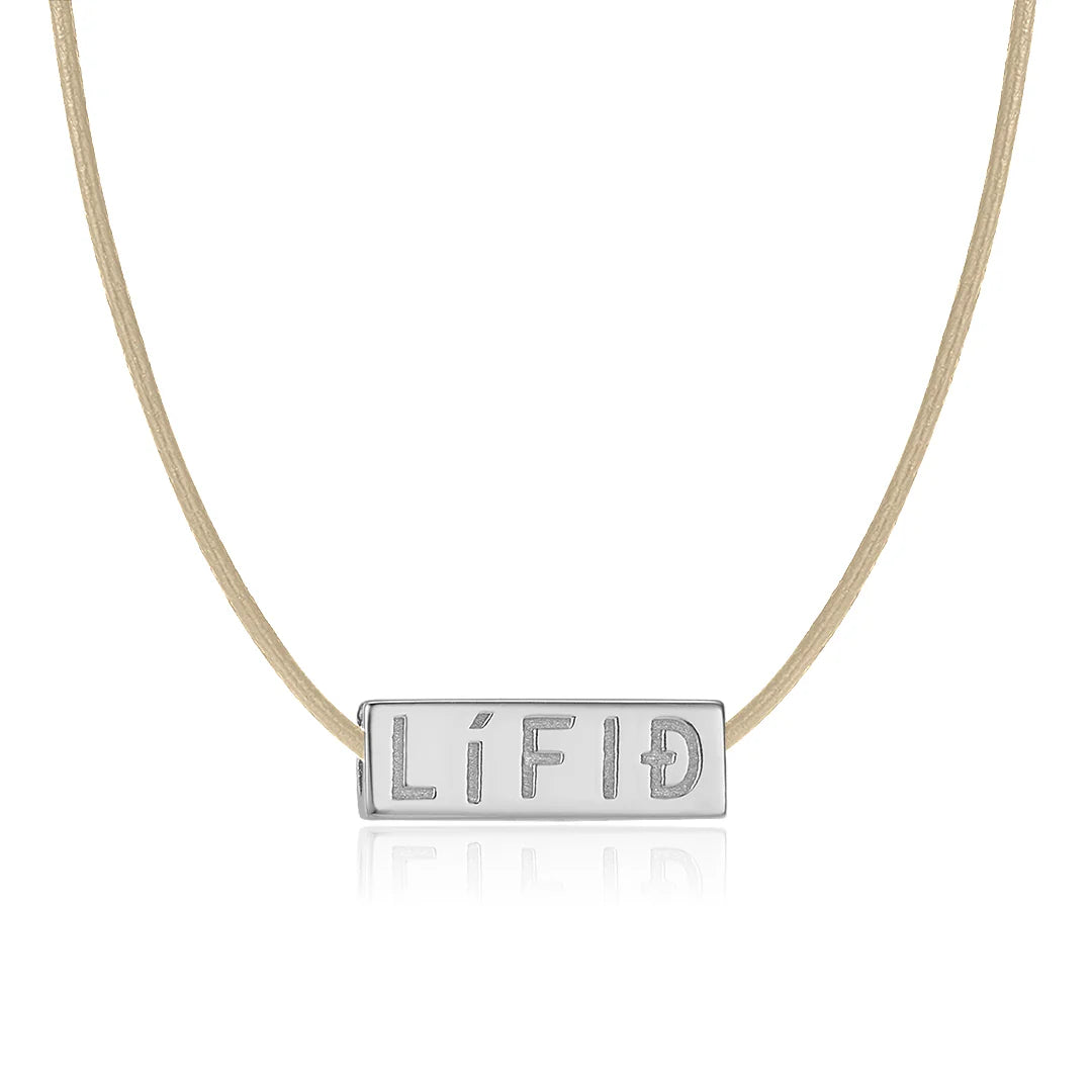 "LÍFIÐ ER NÚNA„ glæsilegt nýtt hálsmen, hannað fyrir við Kraft, félag ungs fólks sem greinst hefur með krabbamein. Hægt að nota menið á nokkra vegu með því að skipta út ólinni.