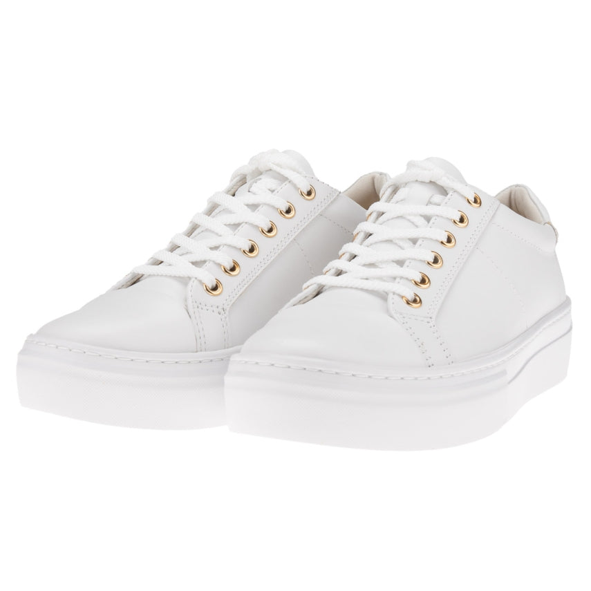 • Töff við kjóla dragt eða gallabuxur, Slétt svart leður. 4 cm hátt platform. Fallega gyllt reimagöt. Gúmmísóli.